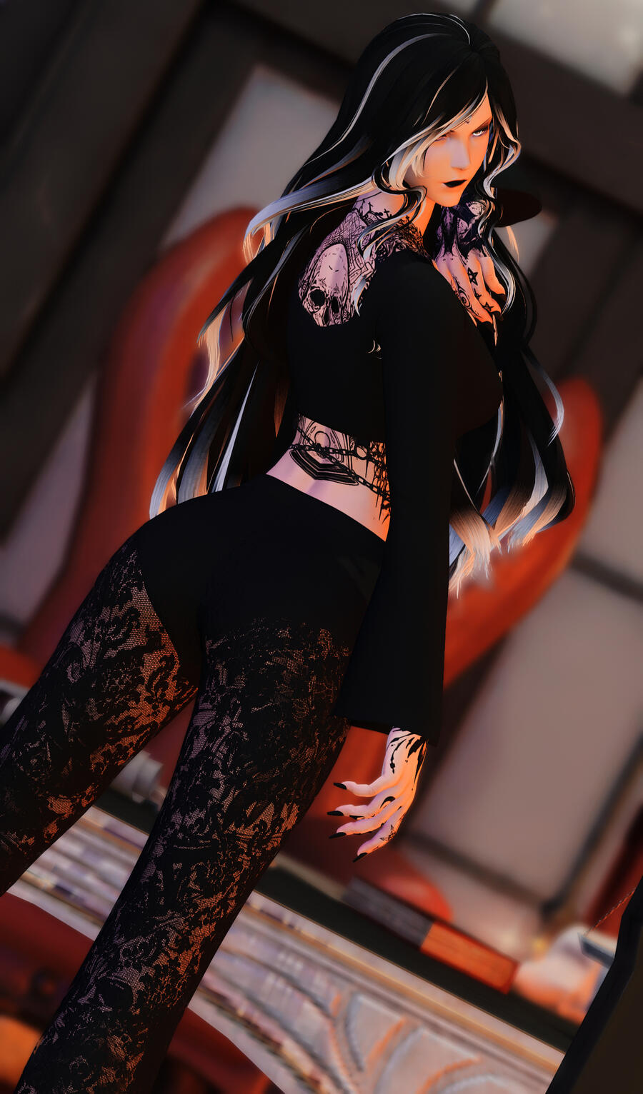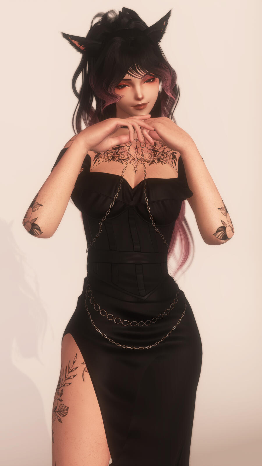 This is not your average bartender, she’s a whispered secret, a fixture of the after dark scene for those who know where to look. Draped in soft menace and sweet temptation, she serves more than drinks; she serves experiences. Though she wears the elegant guise of a Viera, something far older and far hungrier watches from behind her eyes. A World Eater who prefers to savor rather than devour, Darling feeds on attention, obedience, and the quiet thrill of power willingly given. Order a drink, meet her gaze, and understand this: you’re not just here to be served you’re here to be seen, tested, and maybe a little undone.